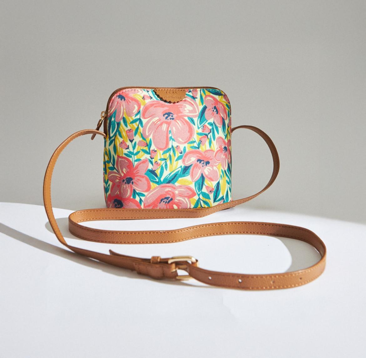 TEAL BY CHUMBAK Women's Sling Bag, Printed Canvas Crossbody Bag with PU Accents